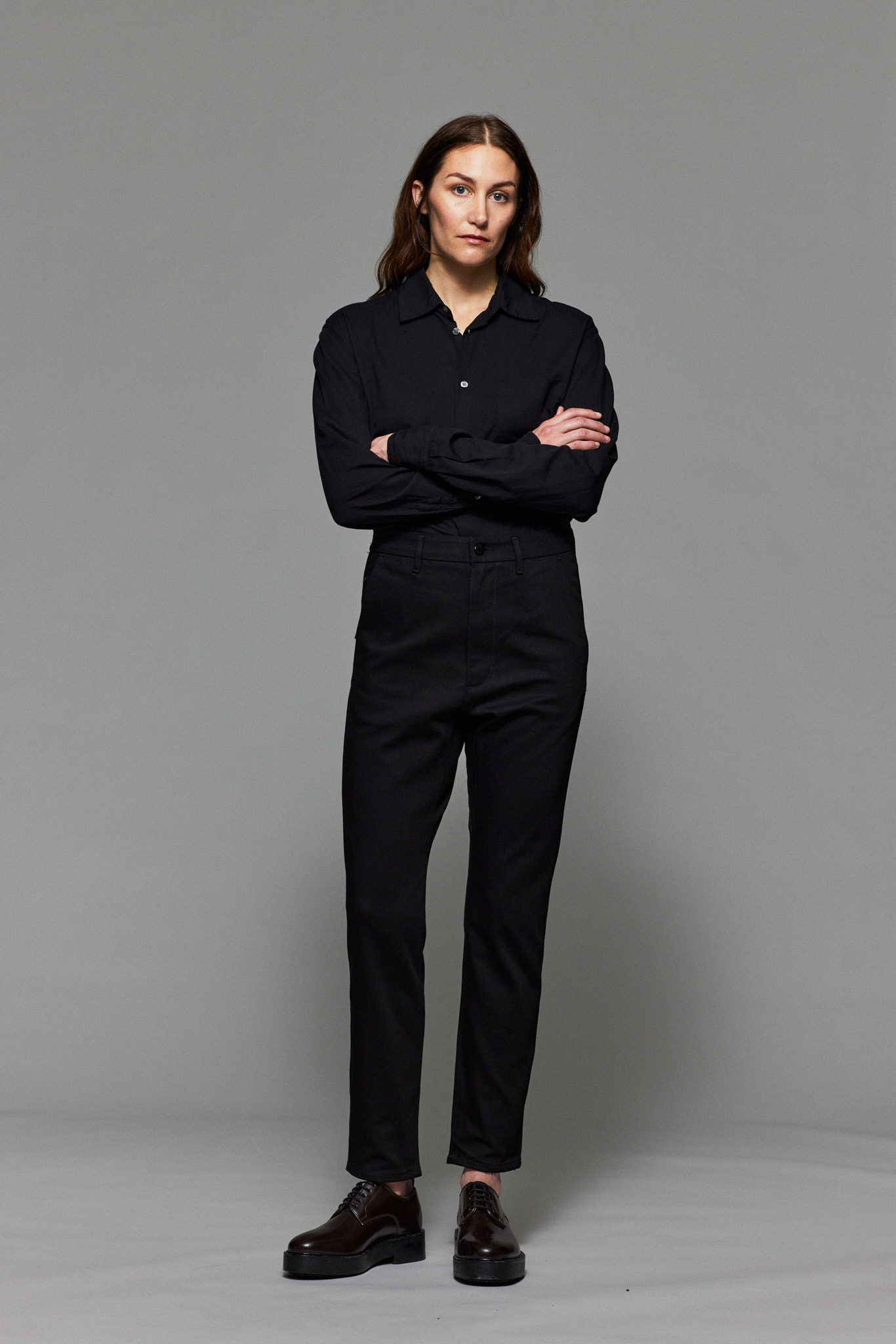 The symbiosis between a jean and a classic tailored men’s bottom. Still a 5 pocket, but featuring slanted front pockets, single welt back pockets and cut and sew detailing. The drop crotch provides you with the freedom to choose to wear them wide and relaxed or on size and proper.